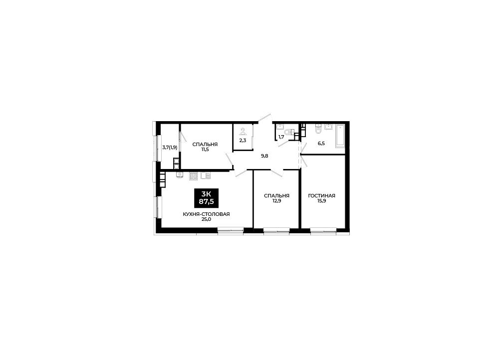 87,5 м²