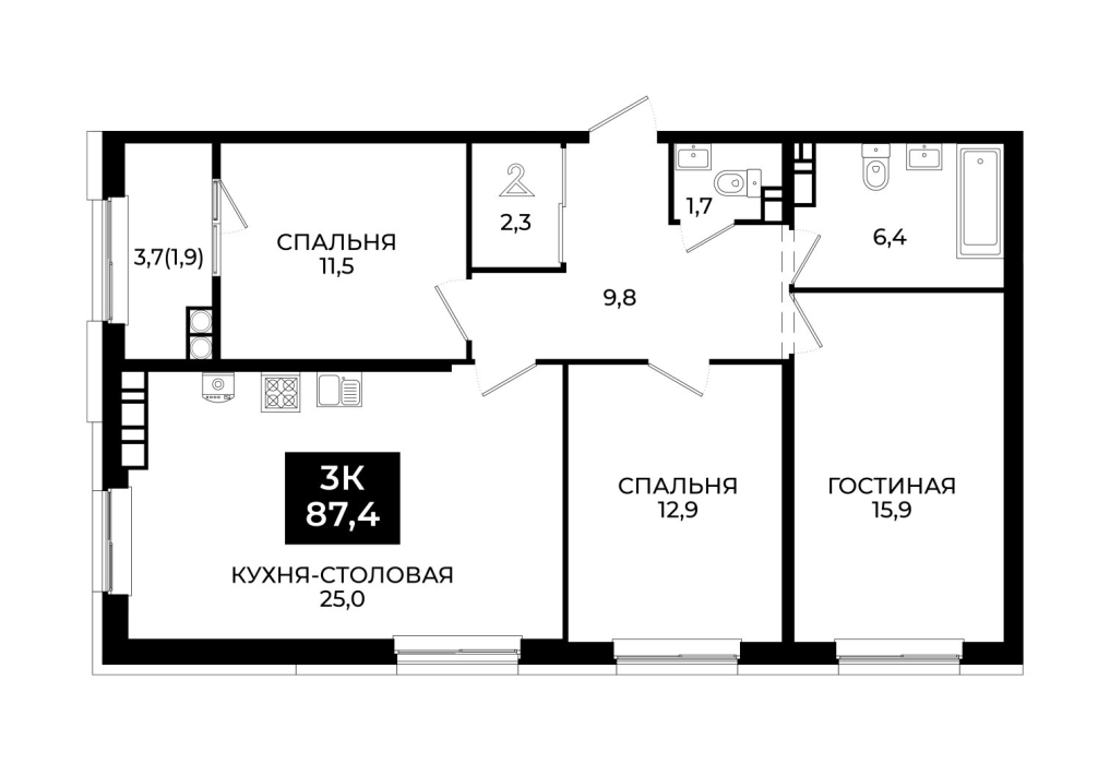 87,4 м²