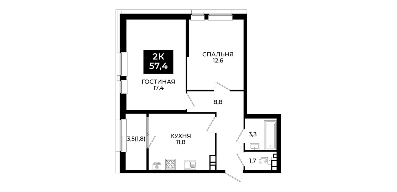 57,4 м²